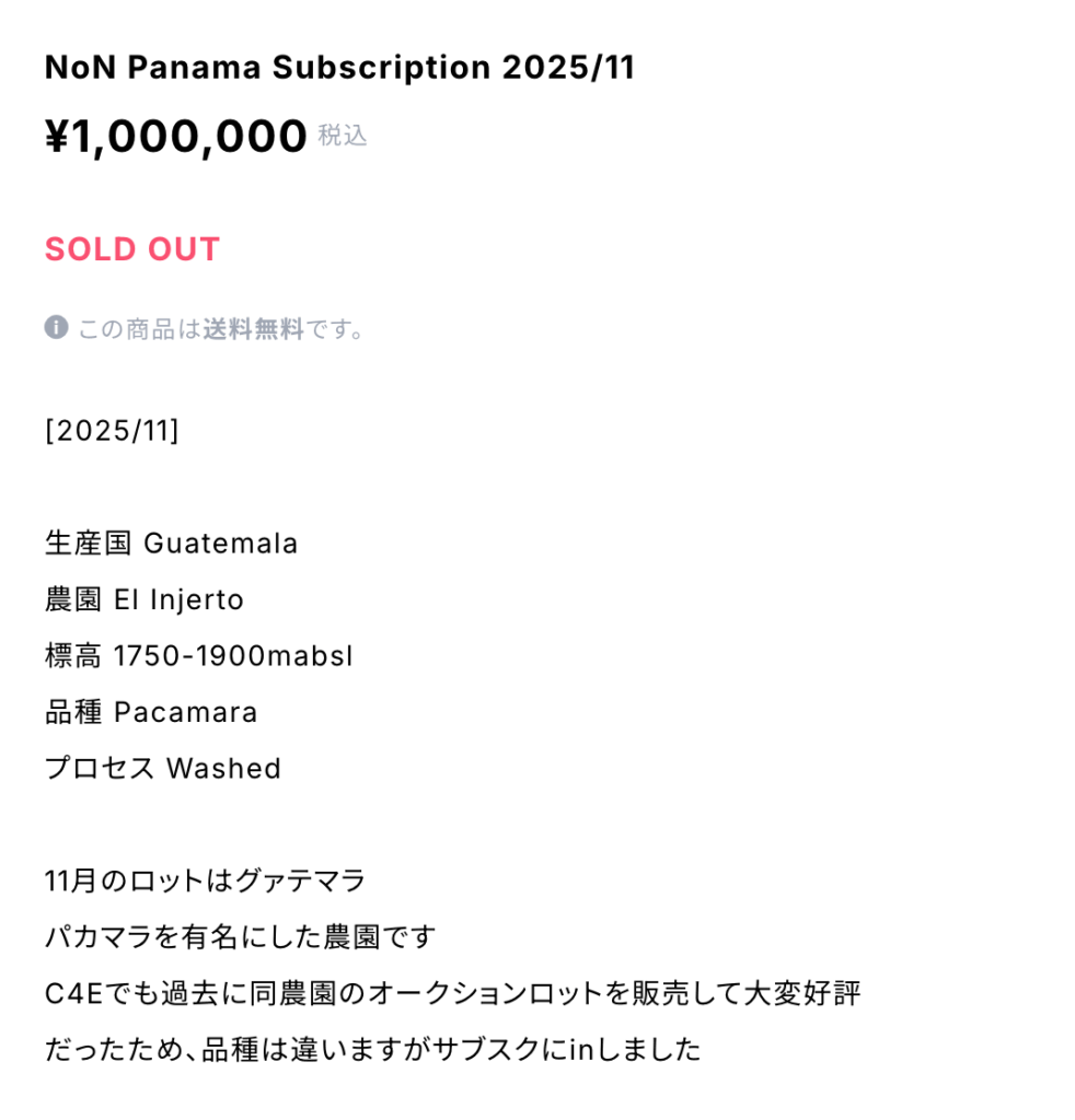 Non-Panama Monthly Subscriptionは、2025年5月から始まったC4Eのサブスクリプションです。2025年11月は、7回目です。