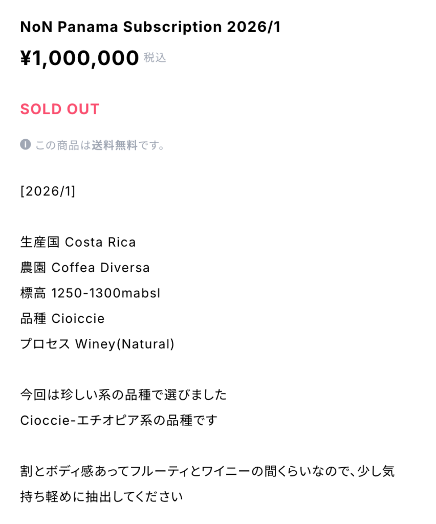 Non-Panama Monthly Subscriptionは、28g(1,500円)、56g(2,500円)から選択できます。