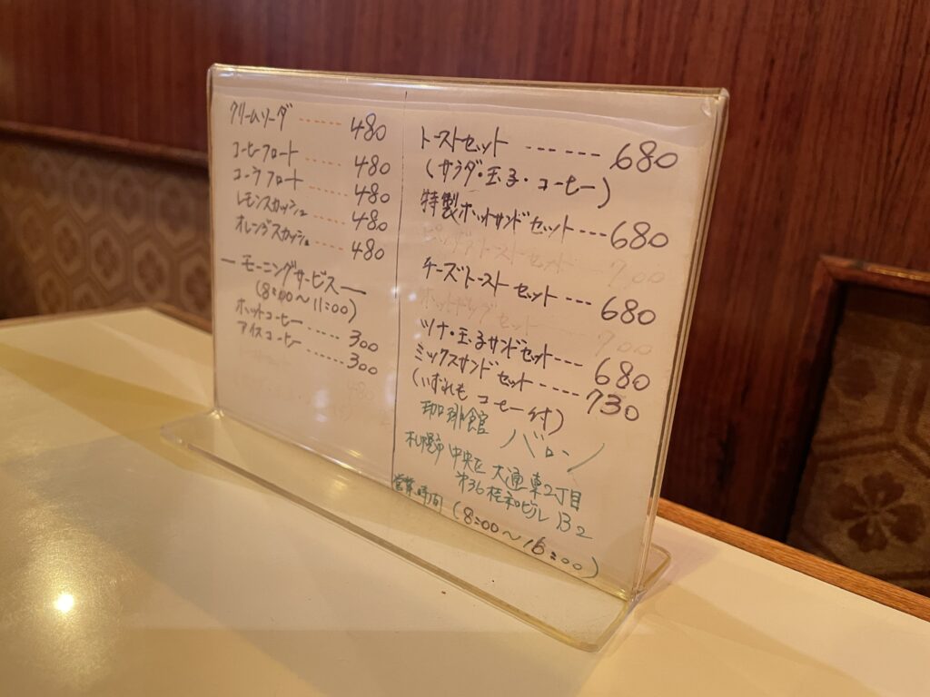 北海道 札幌市 珈琲館 バロン スポンサーリンク 珈琲館 バロンは、北海道札幌市中央区大通東2丁目 第36桂和ビル B2Fにある喫茶店です。珈琲館 バロン外観第36桂和ビル珈琲館 バロン内観カウンター席テーブル席珈琲館 バロンメニューメニューメニューミートスパゲティブレンドコーヒー昭和レトロな落ち着いた空間での、昔ながらの懐かしい味わいです。 Facebook postはてブLINEPocketFeedly
