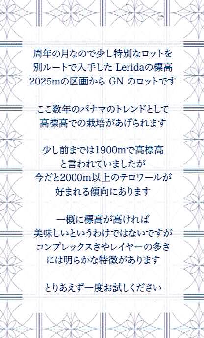 同梱されている封筒にロットカードが同封されます*豆自体の価格帯は毎月異なるものをお送りいたしますが、1年で平均した時にDefinitive.規定の原価になるように調整いたします