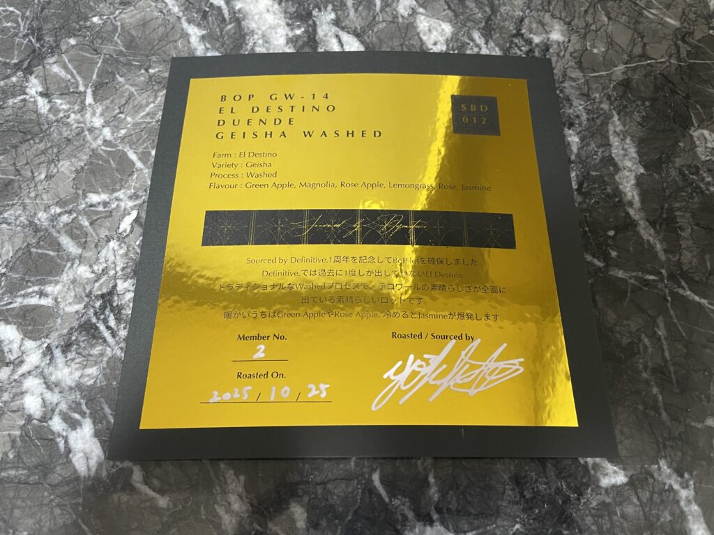 12回目は、BOP GW-14 EL DESTINO DUENDE GEISHA WASHEDでした。Sourced by Definitive.1周年はBoPロットでした。