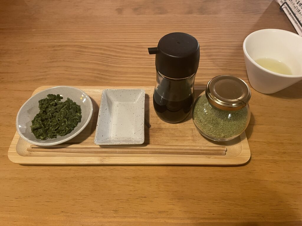 茶殻は、醤油と抹茶塩でおひたしのように食べることができます。