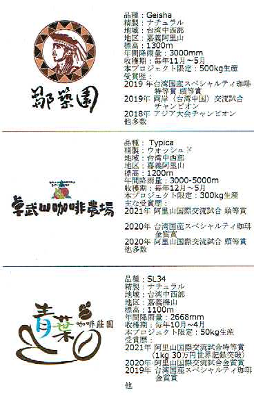 2019年 台湾国産スペシャルティ珈琲 金質賞
