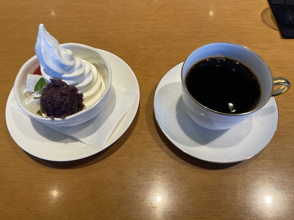 左 クリームぜんざい 右 コーヒー