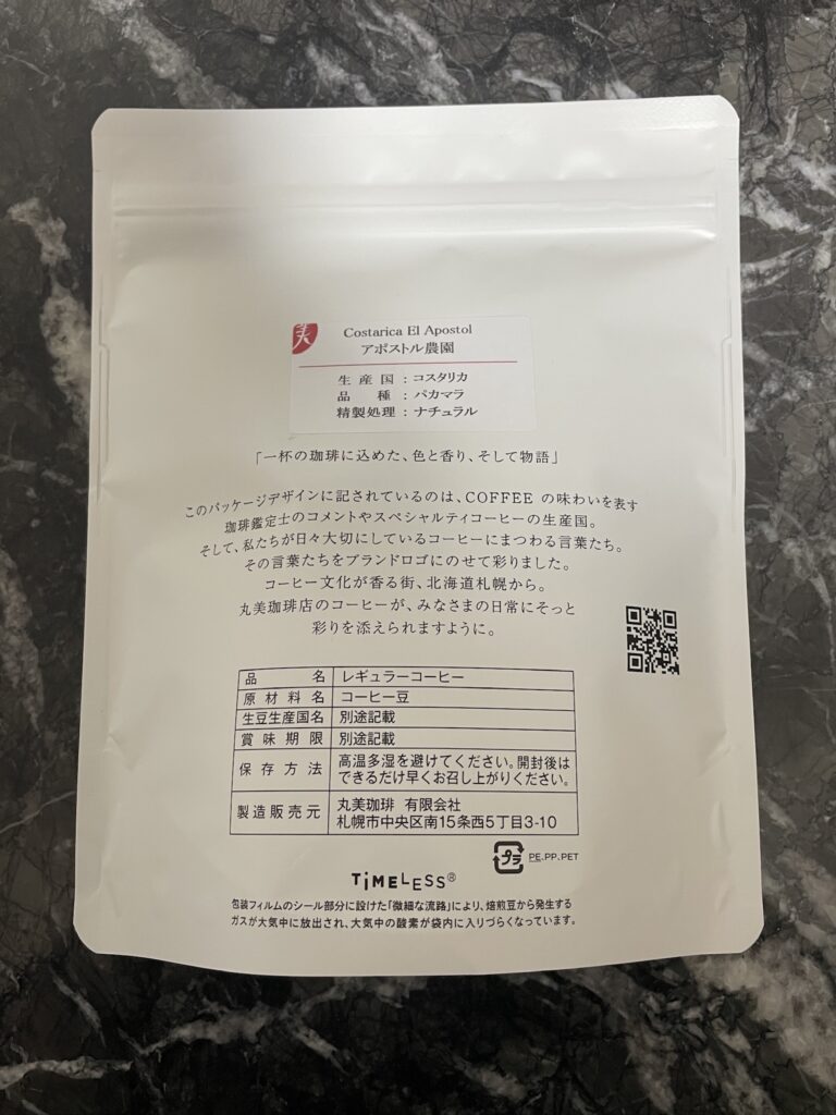 丸美珈琲店 コスタリカ アポストル農園 パカマラ ナチュラル