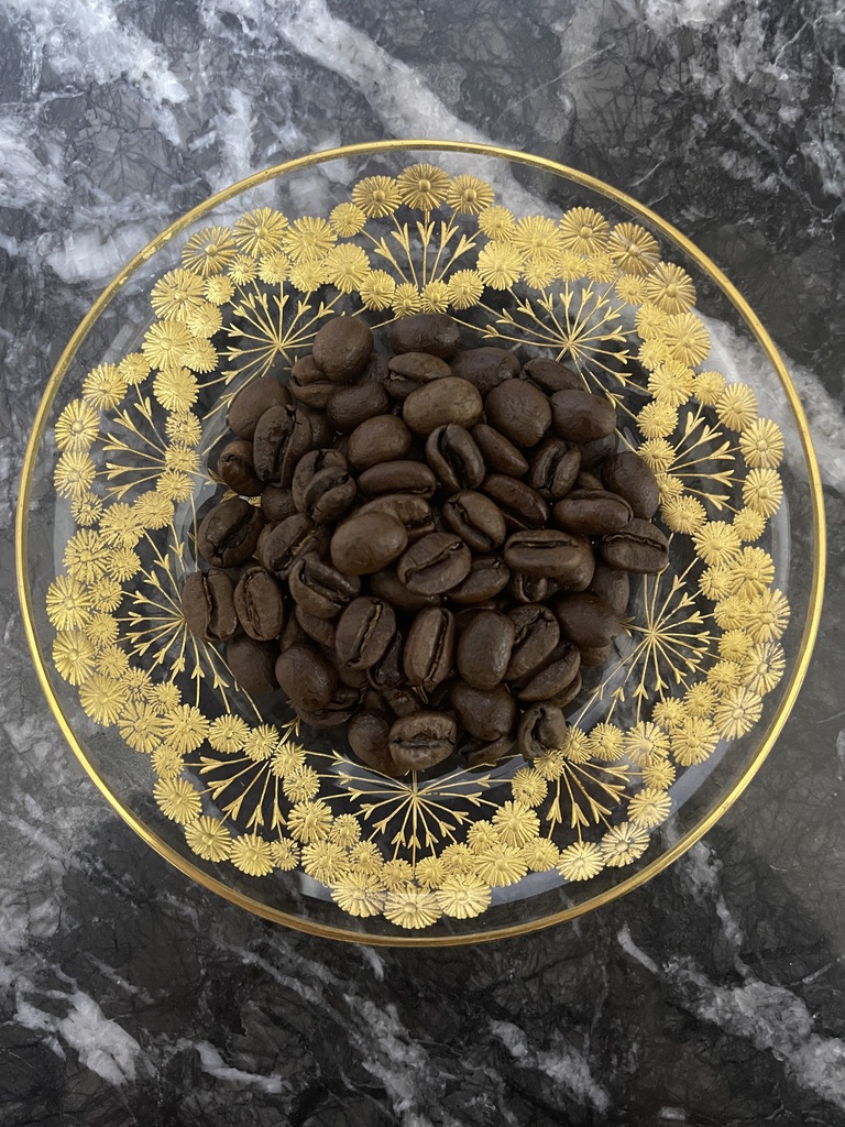 ナッツチョコレート、シロップのような滑らかな口当たり、後味に発酵臭が残ります。深めの焙煎の香ばしい味わいです。