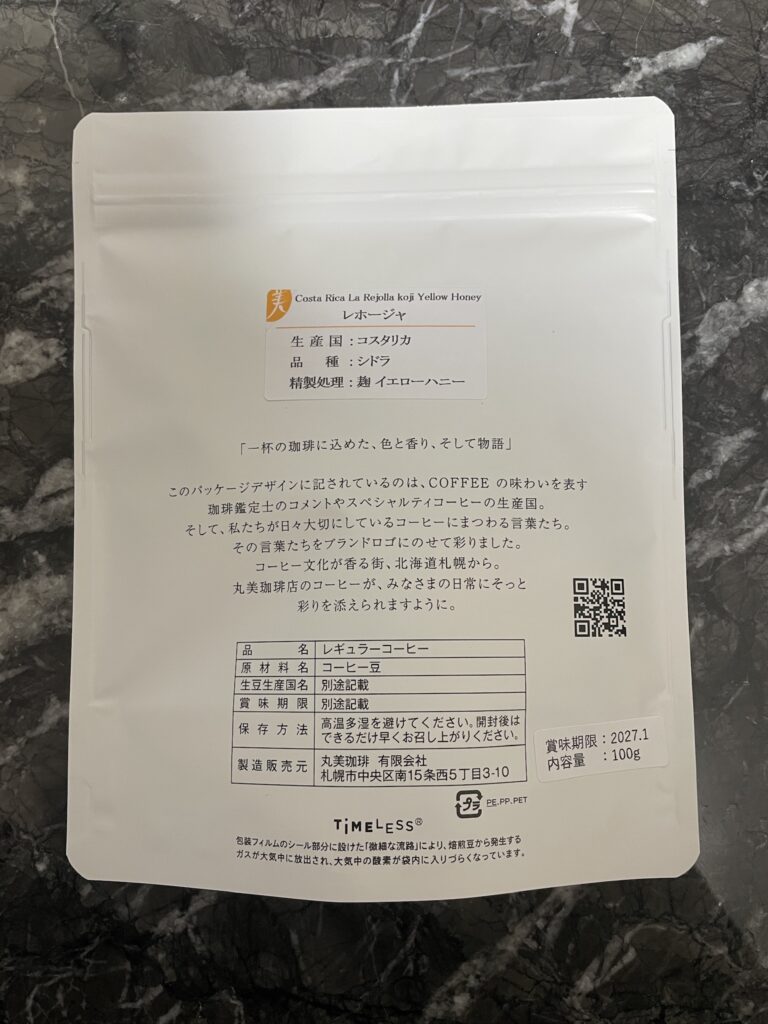 丸美珈琲店 コスタリカ レホージャ農園 シドラ 麹イエローハニー