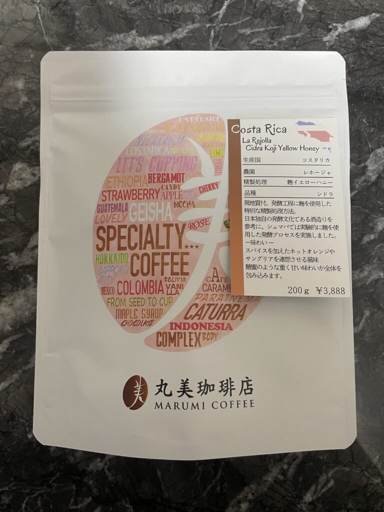 丸美珈琲店 コスタリカ レホージャ農園 シドラ 麹イエローハニーです。