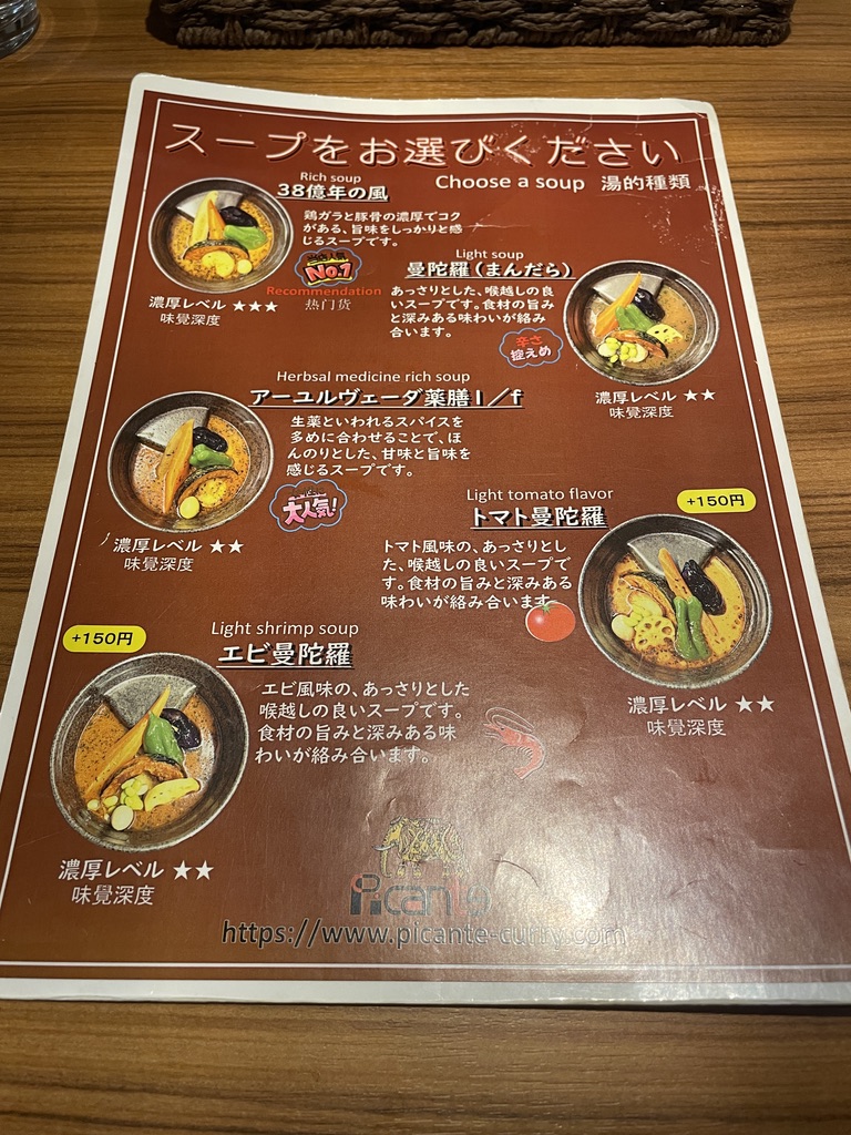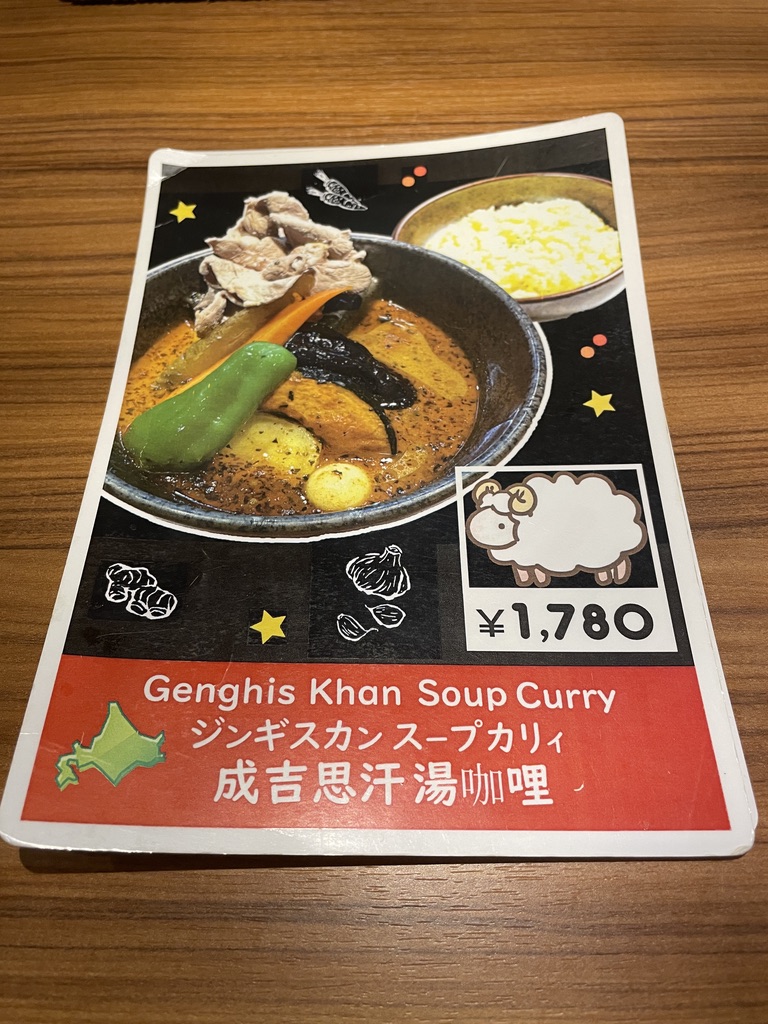 ジンギスカン スープカリィは、円山店限定メニューです。38億年の風は、オーソドックスな味わいです。