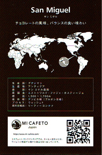 「【コーヒー 豆/粉】サン ミゲル農園 サン ミゲル COFFEE HUNTERS」,MI CAFETO<http://shop.mi-cafeto.com/fs/micafeto/coffeehunters/san_miguel>