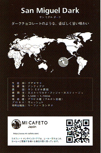 「【コーヒー 豆/粉】サン ミゲル農園 サン ミゲル ダーク COFFEE HUNTERS」,MI CAFETO<http://shop.mi-cafeto.com/fs/micafeto/coffeehunters/san_miguel_dark>