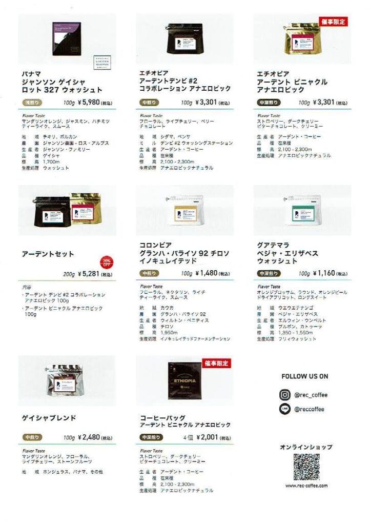 REC COFFEEは、福岡県福岡市を中心に展開するスペシャルティコーヒー専門店です。