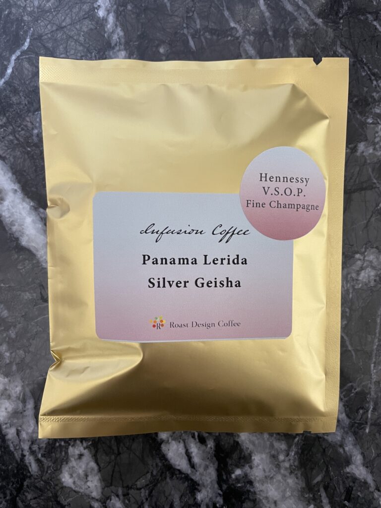 このコーヒーは、パナマ レリダ シルバー ゲイシャに、ヘネシー VSOP フィーヌ シャンパーニュをインフューズしたコーヒーです。