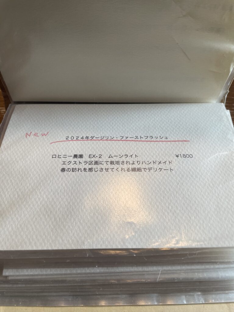 草花のような非常に繊細な香りと甘さが広がります。非常に軽い味わいです。