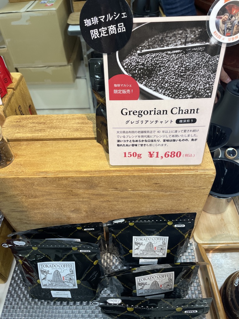 毎年珈琲マルシェ限定商品が販売されます。グレゴリアンチャントは、大分県由布市の茶房 天井棧敷で提供されている極深煎りコーヒーです。