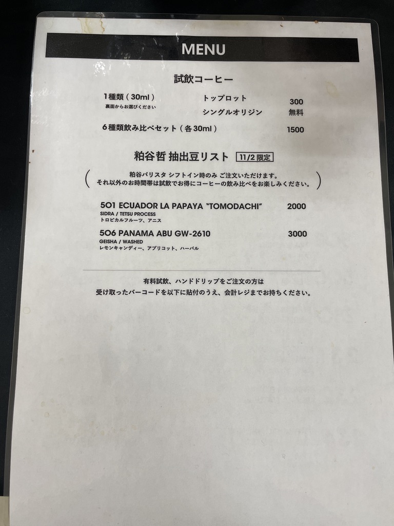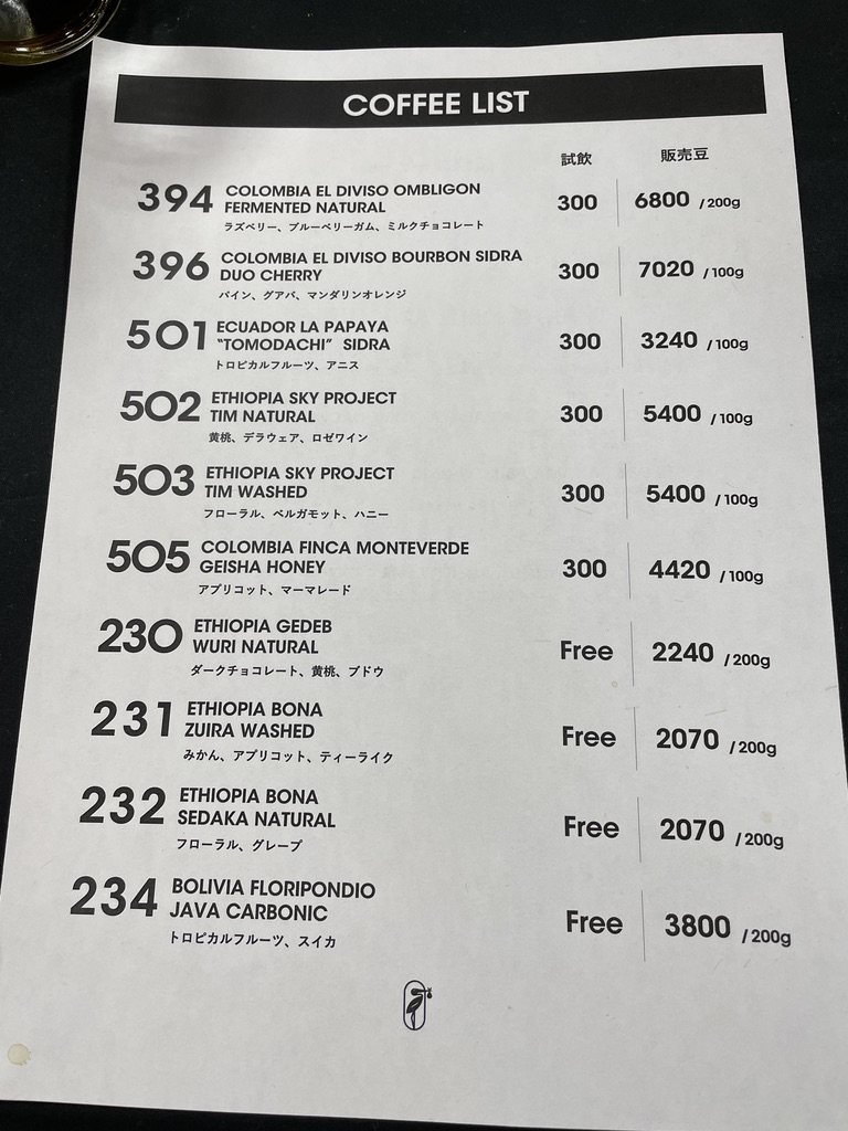 オーナーの田岡 英之(たおか ひでゆき)の知り合いのボリビアの生産者のゲイシャが提供されていました。