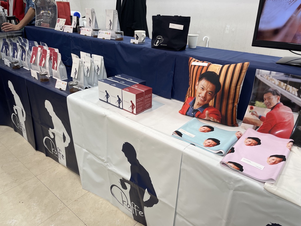 コーヒーの他に、「バリスタ界のエンターテイナー」岡田 章宏(おかだ あきひろ)のグッズも販売されます。