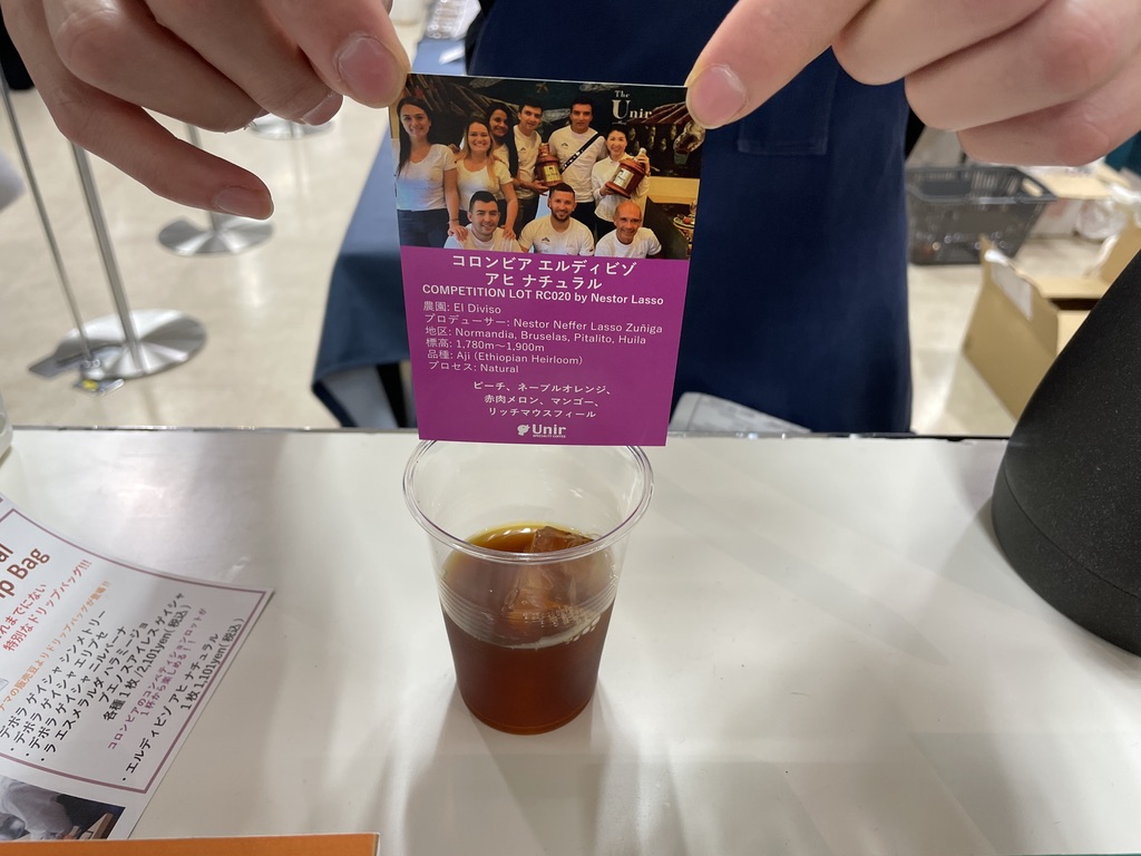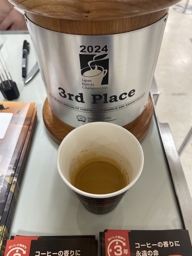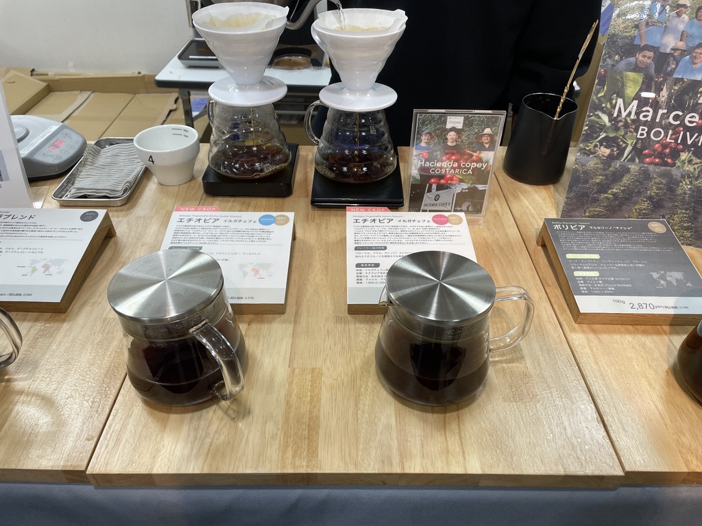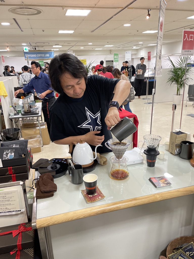 今回は社長の鈴木 太郎(すずき たろう)と飯高 亘(いいだか わたる)バリスタも来場しました。鈴木は、落札したベスト・オブ・パナマ 2024(BoP)(Best of Panama 2024) ゲイシャ・ウォッシュト 第1位のアダウラを振る舞っていました。