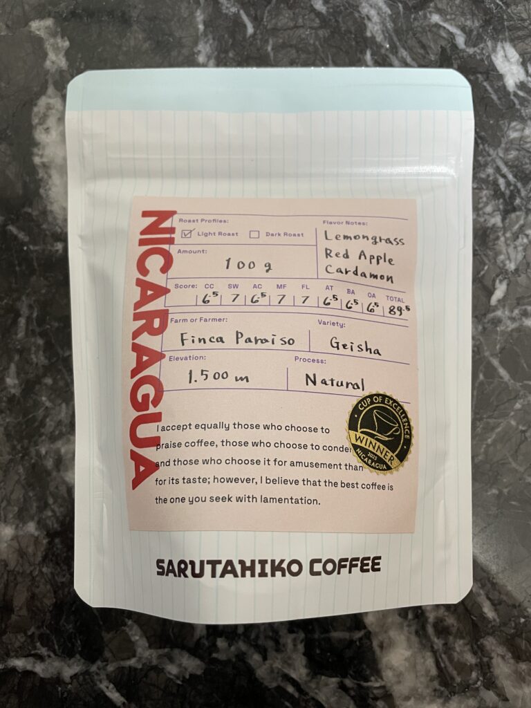 猿田彦珈琲 ニカラグア エル・パライソ農園 ゲイシャ ナチュラル ニカラグア カップ・オブ・エクセレンス 2025年 ナチュラル & ハニー部門 第4位
