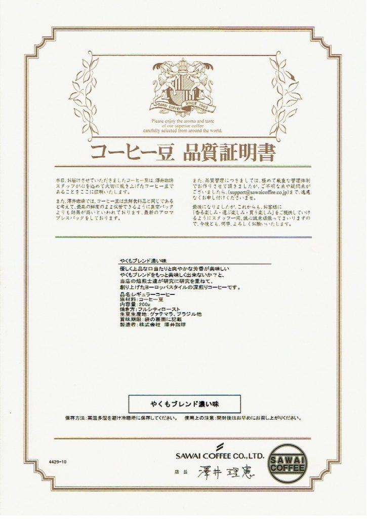澤井珈琲 やくもブレンド やくもブレンド濃い味です。