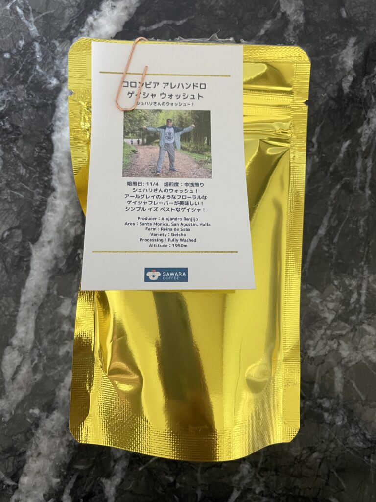 サワラコーヒー コロンビア アレハンドロ ゲイシャ ウォッシュトです。
