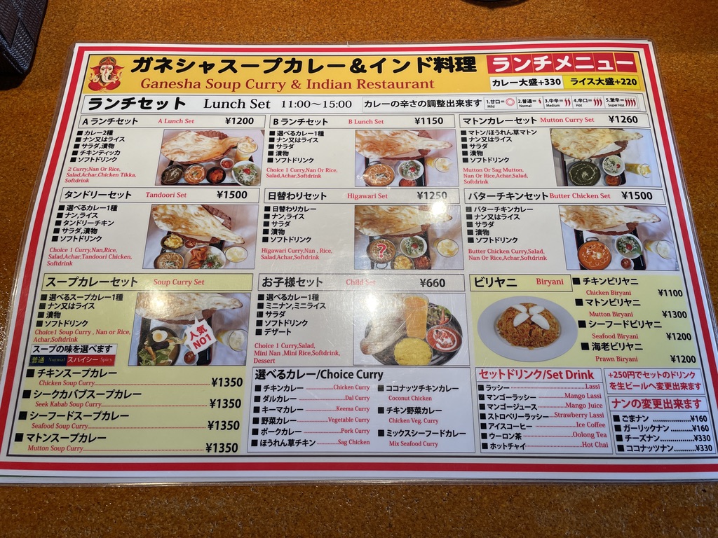 スープカレー&インド料理 ガネシャは、北海道札幌市西区山の手5条1丁目1-1 山の手会館にあるカレー店です。