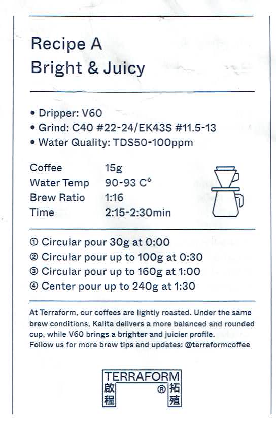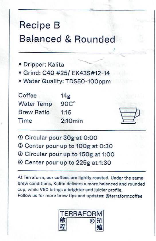 Terraform Coffee Roasters パナマ ガト・グランデ ゲイシャ ウォッシュトです。