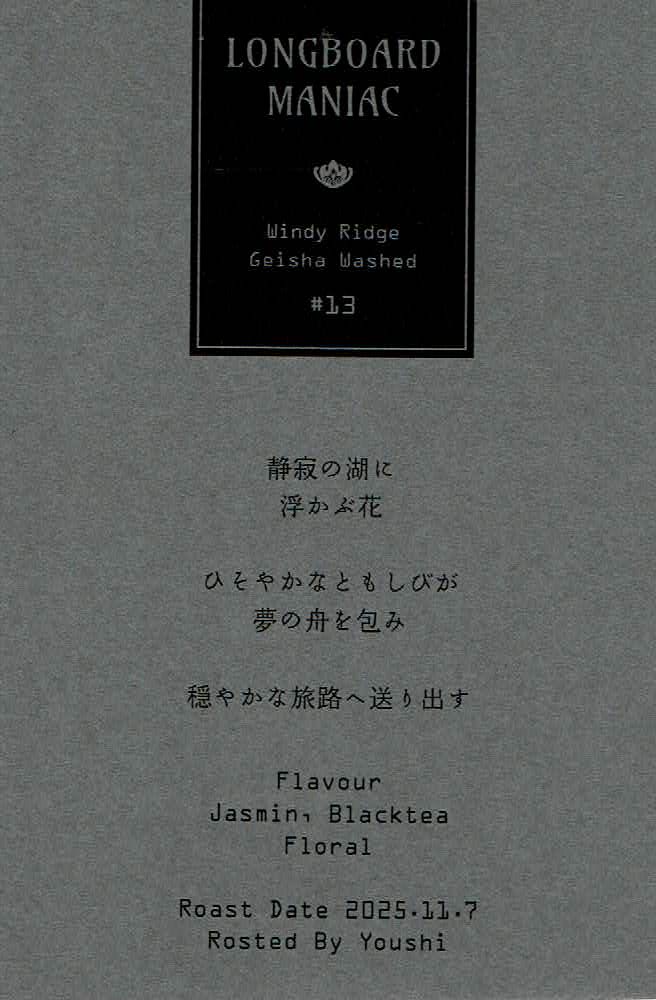LONGBOARD MANIACは、2025年5月に始まったYoushi Coffeeのロングボード・スペシャルティコーヒー(Longboard Specialty Coffee)のサブスクリプションです。2025年11月は、全6回のうち第6回です。